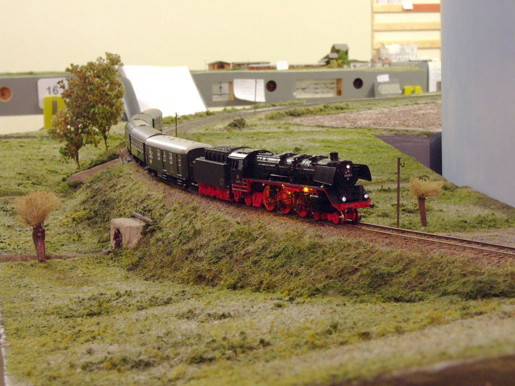 Lok 03 088 auf Testfahrt mit eingeschalter Triebwerksbeleuchtung und mit Sound