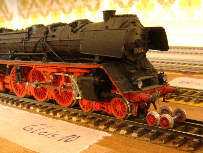 An der Lok der BR93 kann man die neuen Kuppelräder im Vergleich mit