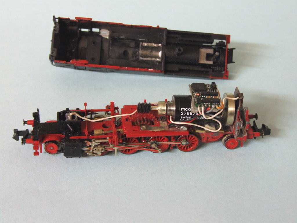 Hier sind ein paar Bilder vom Dekodereinbau, Motorumbau und Lichteinbau in die