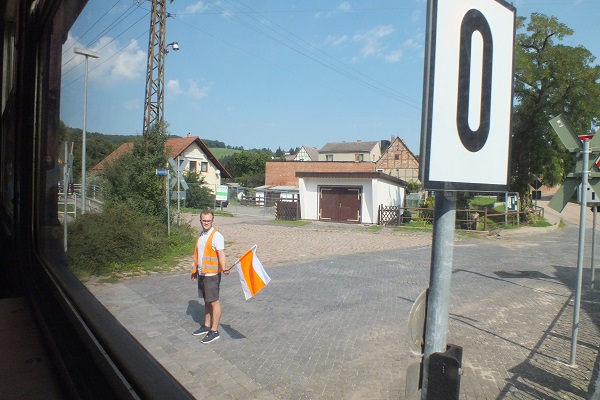 In Biesenrode muss in der einen Fahrtrichtung der Bahnübergang gesichert werden